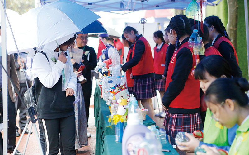 环保关系着他人、社会甚至全世界的发展,通过环保活动可以培养学生的社会责任感。我校开展环保工作 6 年以来,每日倡导环保教育理念和践行环保文化活动,定期开展环保月,培养和提高每位学生的环保意识和行为。同时,每周前往周边社区和学校开展环保宣导,带动身边的每一个人,影响社会,形成良好的保护环境新风尚。在此过程中逐步形成了独具华商理工特色的环保体系,引导全校师生形成良好的环保意识和文明行为习惯,共建华商理工美丽校园。