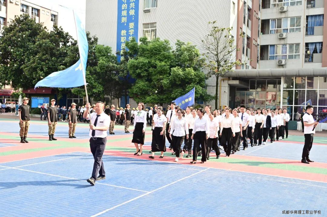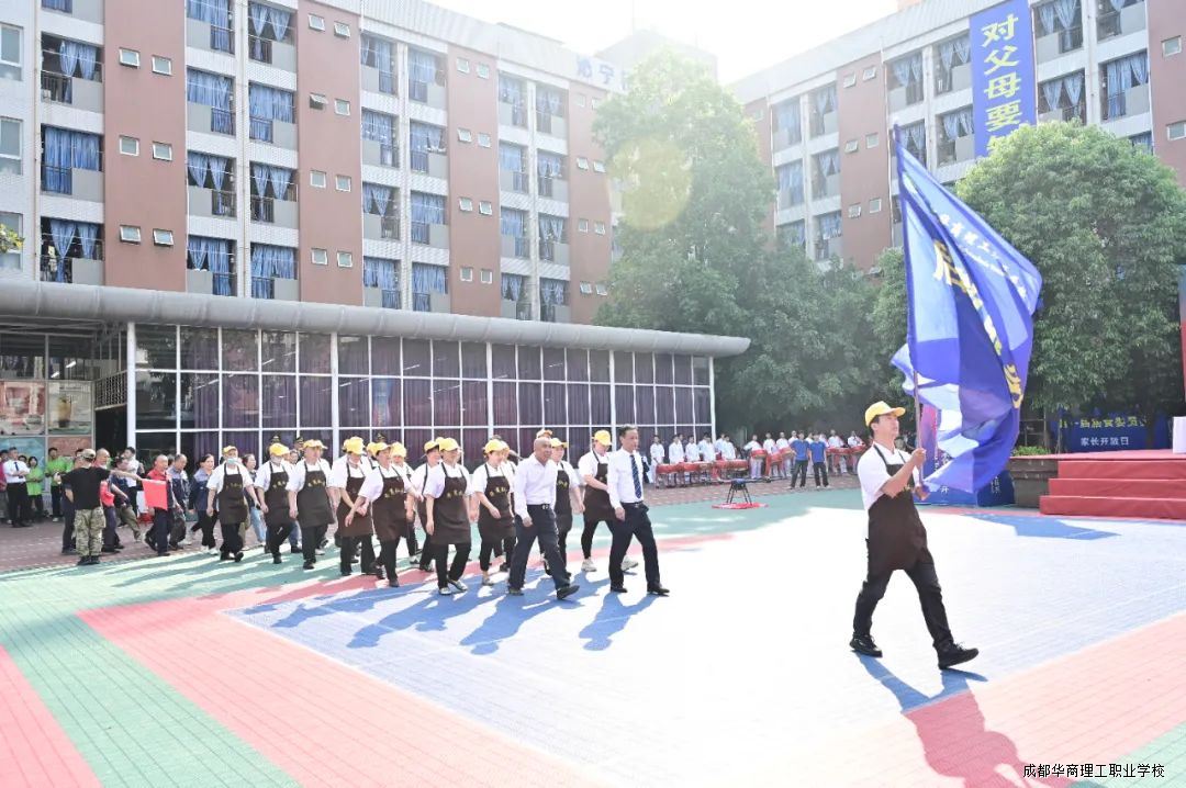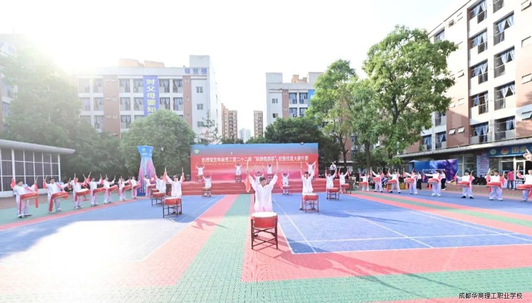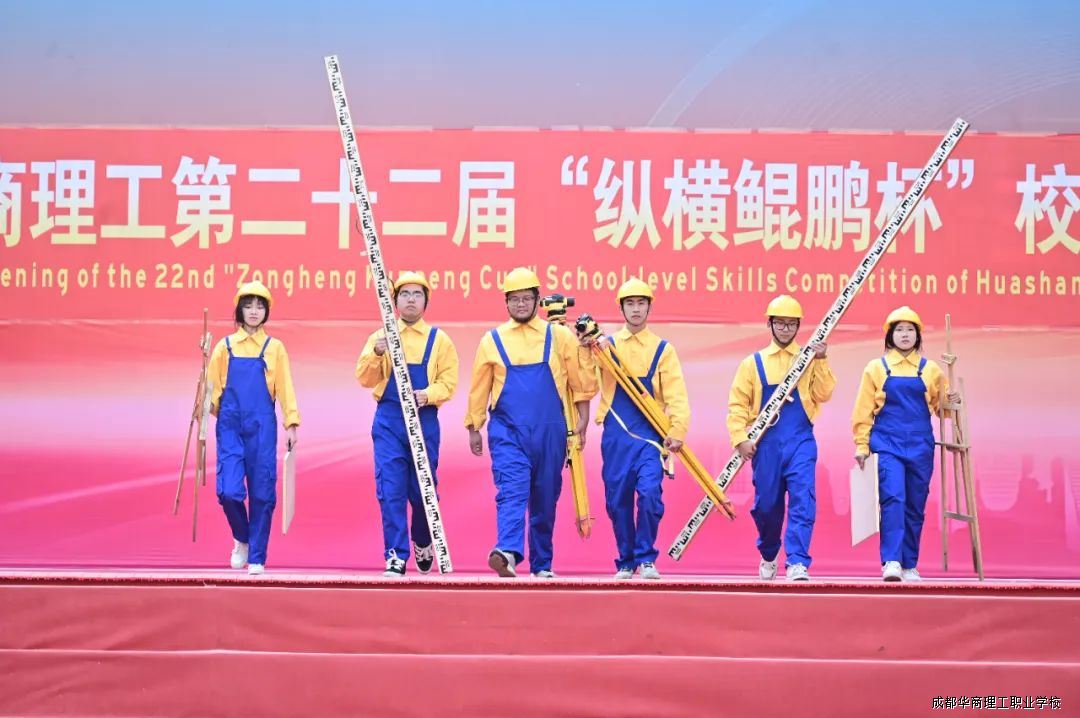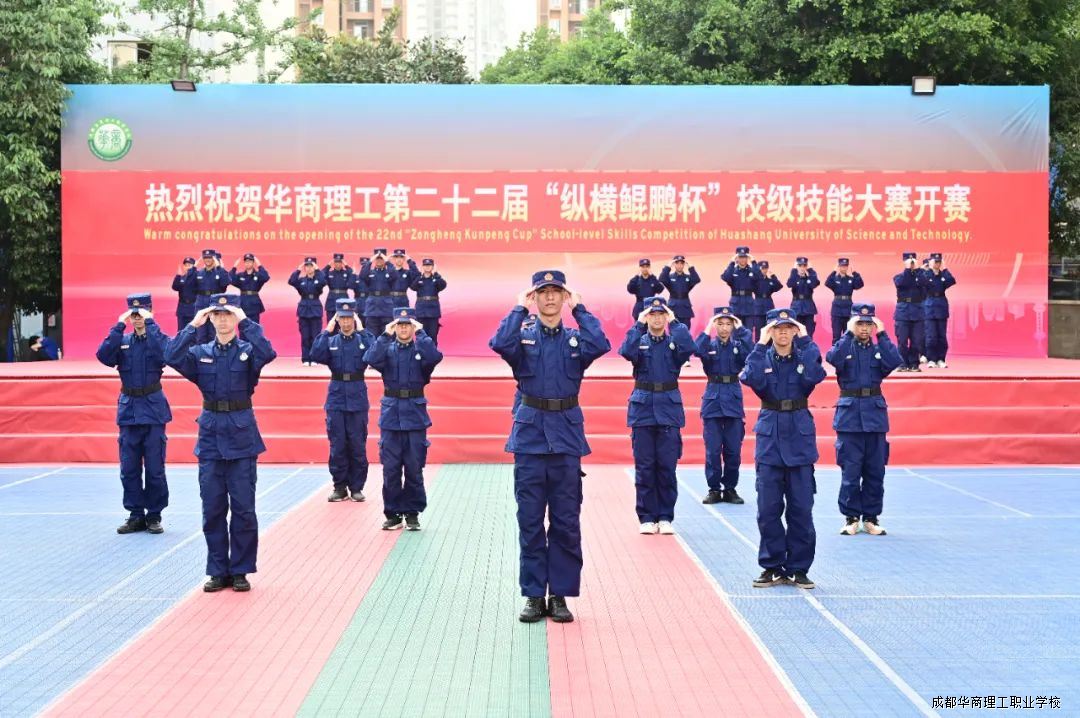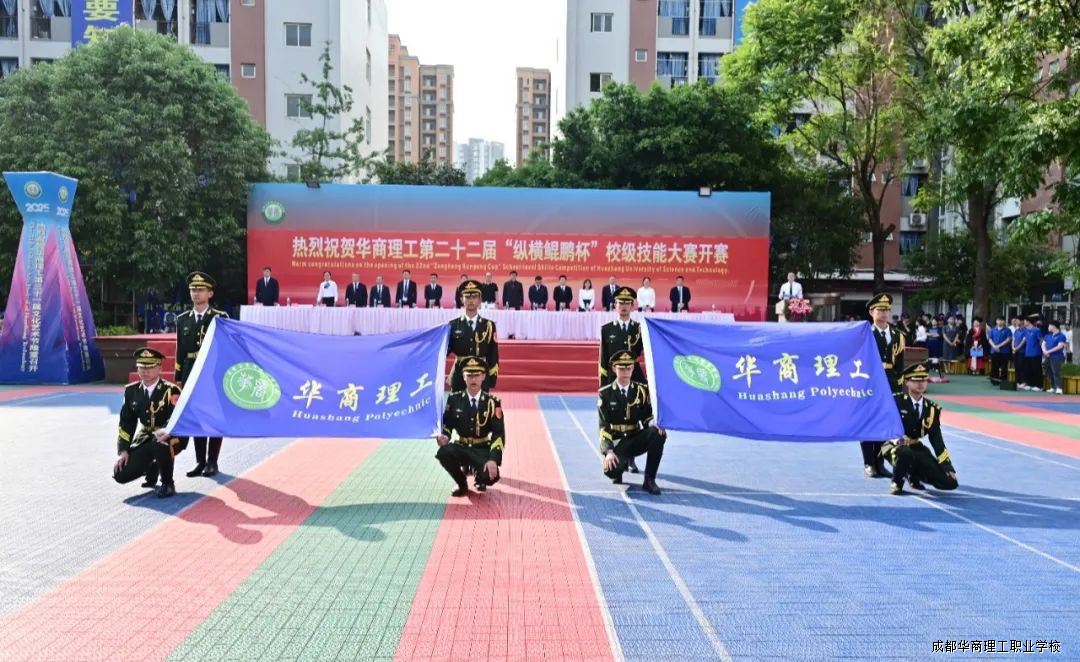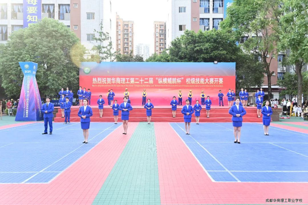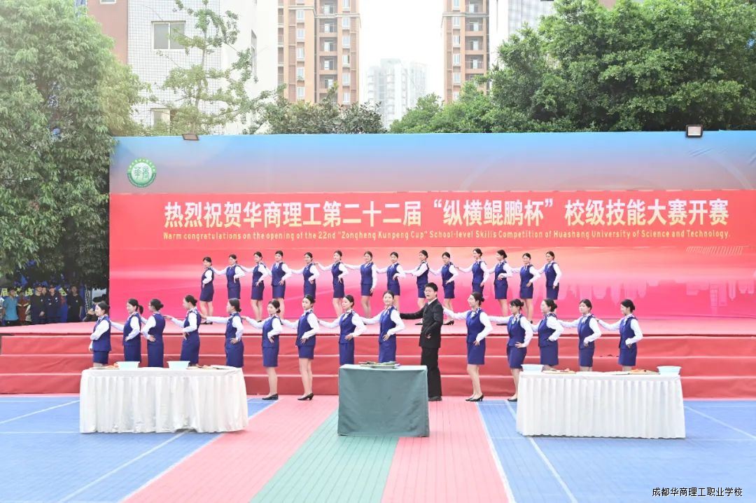 5月12日下午,成都华商理工职业学校第二十二届“纵横鲲鹏杯”校级技能大赛暨教师技能大比武在学校西区操场盛大开幕。