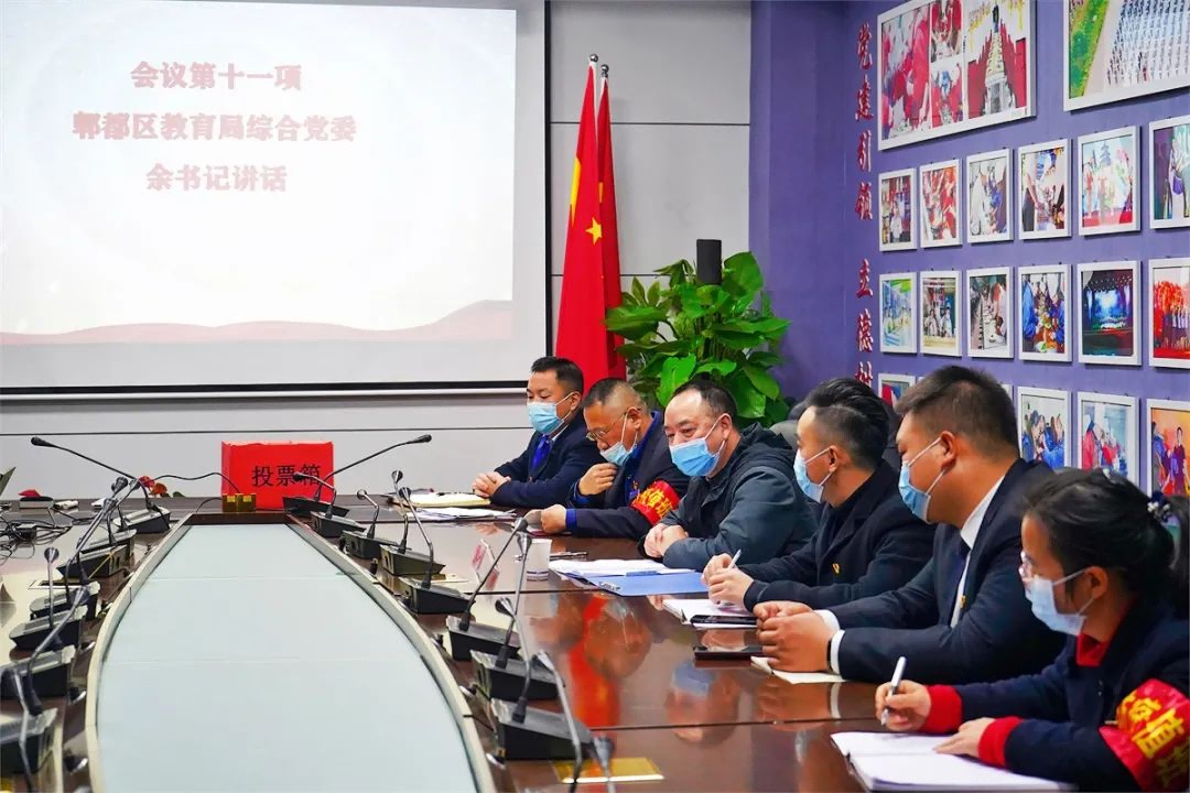 为进一步加强党组织建设,充分发挥党支部的战斗堡垒作用和党员先锋模范作用,增强党组织的创造力、凝聚力和战斗力,11月22日下午,根据区教育局党委的部署,我校党支部召开支部党员大会。大会的任务和议程有两项:一是听取上届党支部委员会工作报告;二是选举新一届党支部委员会。党支部到会党员16人参加,郫都区教育局综合党委余大贵书记现场督导。会议在庄严的国歌声中正式开始。