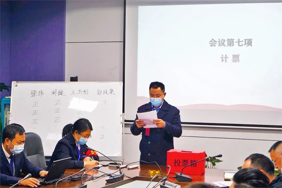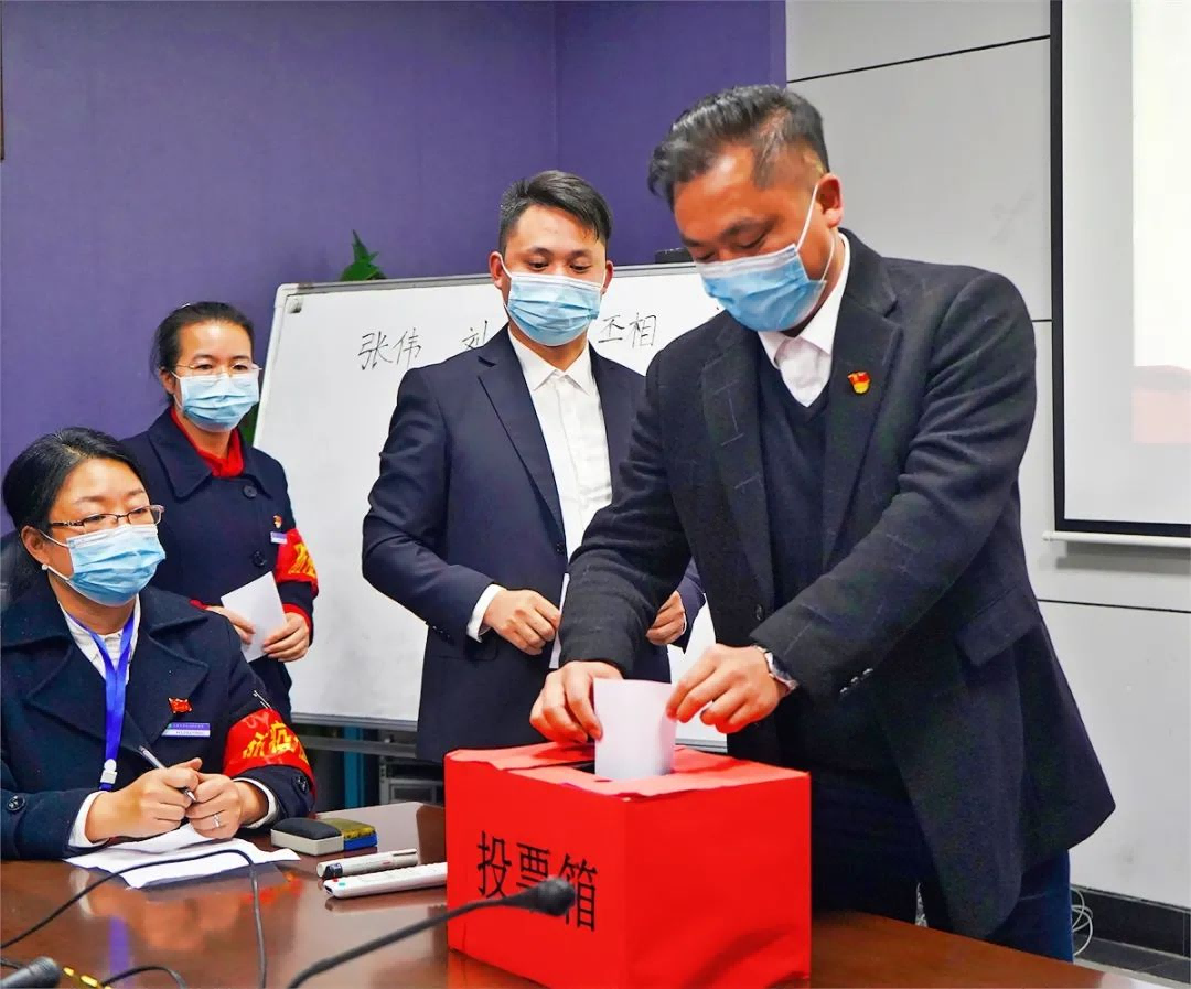 会议采取无记名投票方式选举办法,选举产生了党支部委员会成员:张伟、王丕相、刘健。经党支部委员会第一次全体会议选举张伟同志为新一届党支部书记,刘健同志为新一届党支部副书记,王丕相同志为新一届党支部委员。
