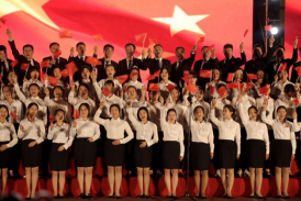 晚会最后,在全校师生合唱《歌唱祖国》的歌声中,与会领导嘉宾与演职人员共同上台合影留念,共同庆祝伟大祖国71周年华诞。至此,成都华商理工职业学校颂祖国,咏中秋,爱成都,迎大运暨2020级迎新文艺晚会在对祖国的祝福声中圆满落下帷幕。