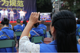 我校艺术中心和文化中心为本次欢迎晚会精心筹备的7个节目《啦啦操》;环保情景剧《爱》;舞蹈表演《different way》、《扎西德勒》、《惊鸿一面》、《爱心大无限》和手语《跪羊图》展现在家长们面前,生动地诠释了学校人文风貌和教学成果,传递了对家校和谐共建的美好期待,将晚会引入了高潮。家长们听得认真、看得专注,热烈的掌声一次次响起。1个小时的节目表演,凝聚了我校老师和新生共同的智慧、心血和才艺,同时,让家长们见证了此次入学教育中孩子的成长与收获。