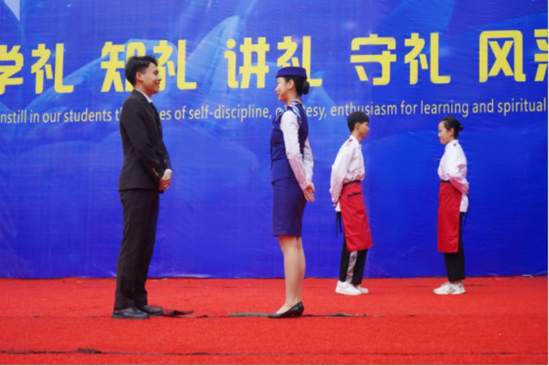 王琳校长致辞,他号召大家把文明礼仪深深地刻在心中,争做知礼懂礼的华商学子,挑起传承礼仪的使命。文明礼仪活动月暨礼仪大赛是实践学校校训“德能淬理,兼爱善工”的基本职业素养,也是学校提出“男生要具绅士风度,女生要具淑女气质”的具体实践。王琳校长给全体师生提出几点要求:一是全体老师和教职工,坚持让学生做的事,教职员躬亲共做;要学生学的知识,教职员躬亲共学;要学生守的规则,教职员躬亲共守。二是全体华商理工学生在学校要是一个好学生。上课守纪律、就餐有秩序、活动讲规则、举止大方得体。三是在家庭也要是一个好孩子。爱劳动,让父母顺心;懂节俭,让父母舒心;求上进,让父母放心;有孝心,让父母开心。四是在社会要是一个好公民。公共场所讲公德,人际交往宽容大度。全体华商师生,让我们携手让我们的校园处处弥漫文明礼仪之风,让我们的学校更加美好!
