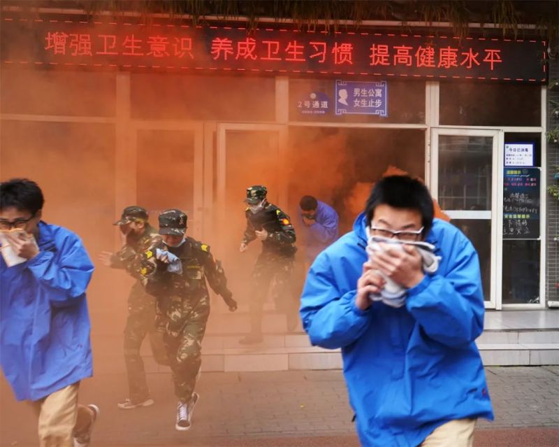 突发灾难面前,一定要沉着冷静,每层楼居住的老师(包括临时分布到楼层的老师)都是本楼层安全的第一责任人,作为本楼层的第一责任人,学生安全至上,应第一个到达现场进行指挥,并有序疏散学生撤离后,方能离开。居住本楼层的老师在敲击学生房门后在保护好自己的同时最好快速到达楼梯口,指挥学生使用润湿的毛巾或衣服掩住口鼻弯腰、低姿式匍匐前进的方式迅速逃生,逃生演练时间90-180秒。