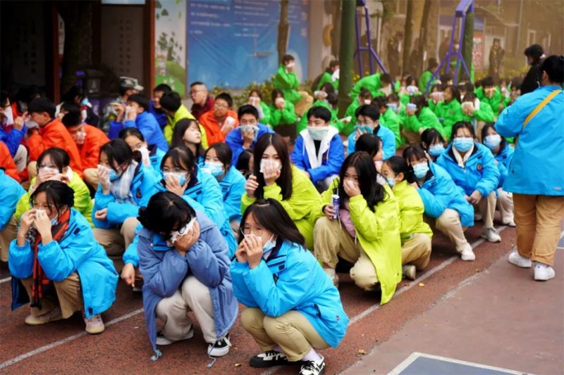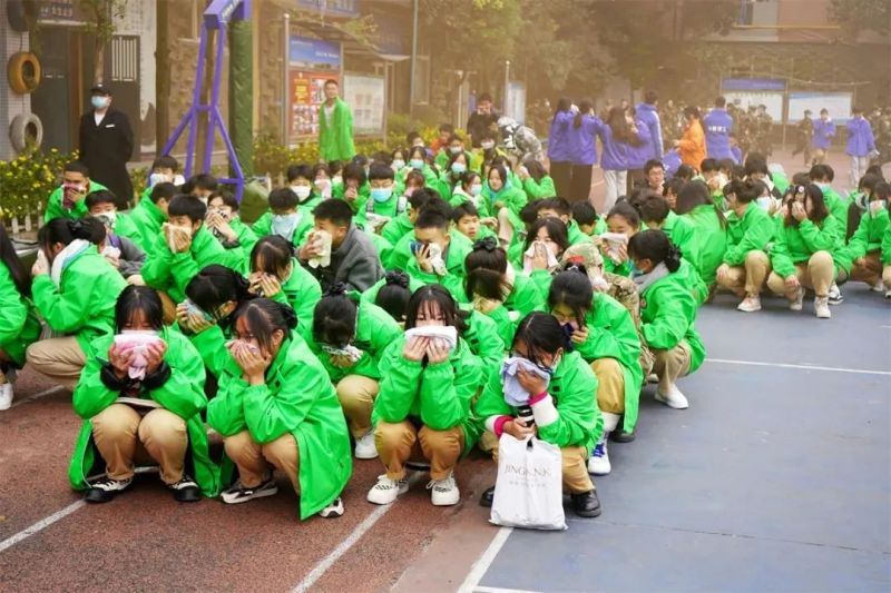 为增强全校师生安全意识,提高教职员工对突发灾难应急处置能力和组织逃生自救的能力。成都华商理工职业学校于2021年11月29日下午在学校西区进行了学校寝室火灾应急疏散逃生自救演练。