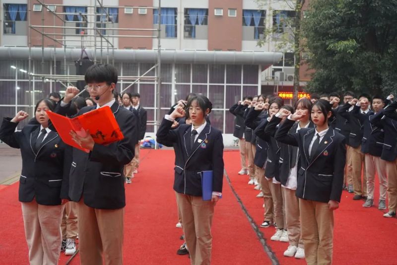 入团仪式在庄严的国歌声和校歌声中拉开帷幕,同学们目光坚定,正气凛然。