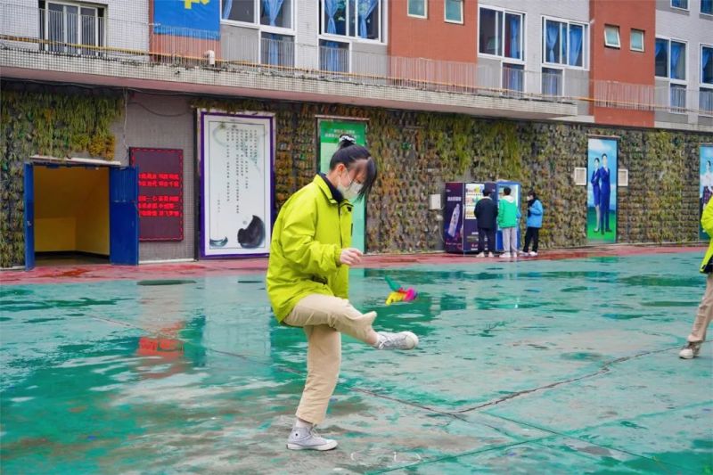 “预备——计时开始!”随着裁判员的一声令下,比赛正式开始。选手们个个精神振奋,斗志昂扬,毽子上下翻飞,时而向左,时而向右。一时间,五颜六色的毽子此起彼伏,似在选手们的脚尖上盛开出一朵朵鲜艳的花。