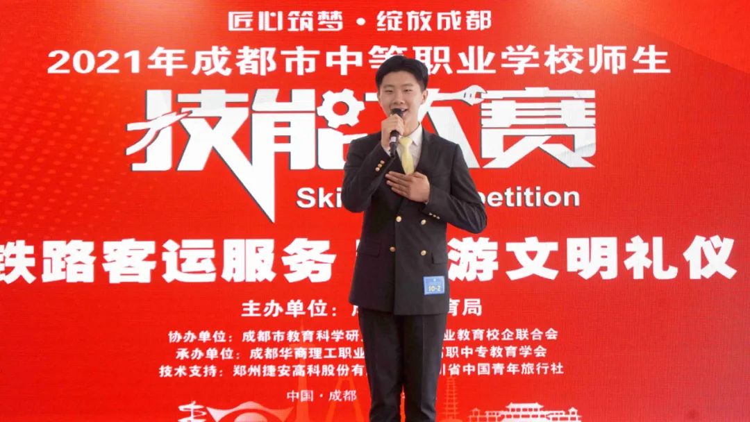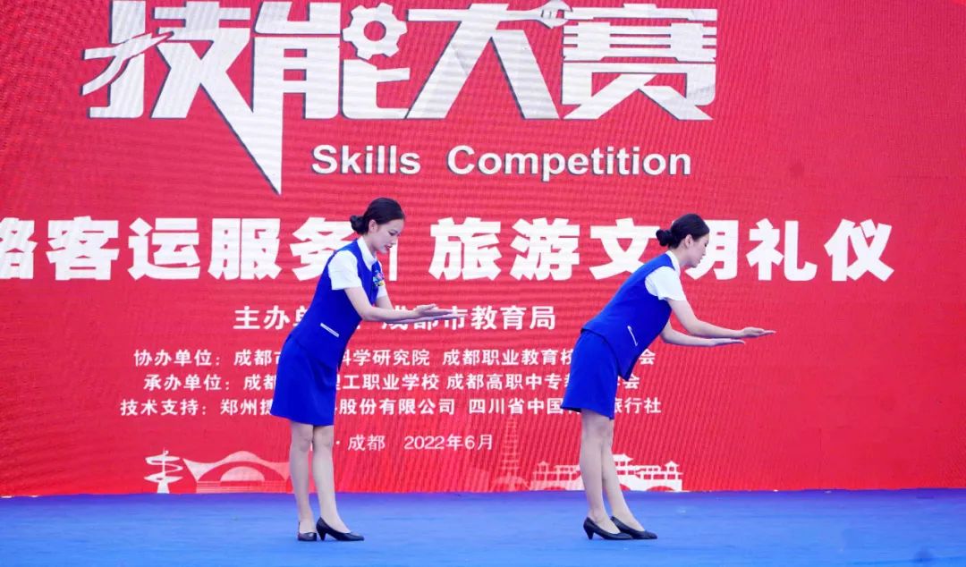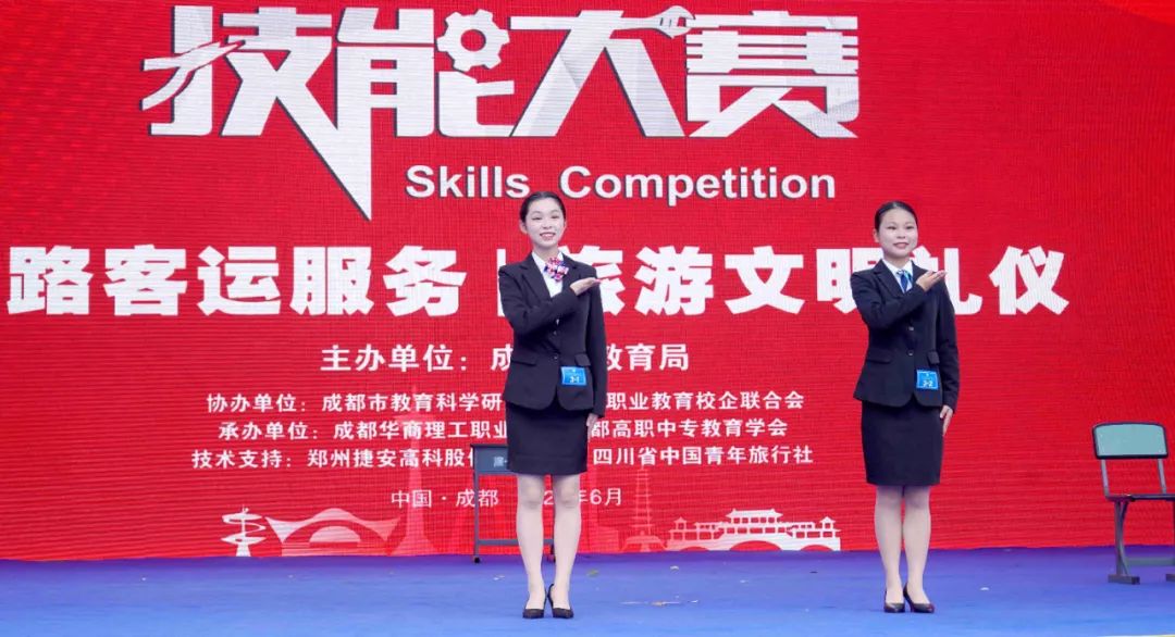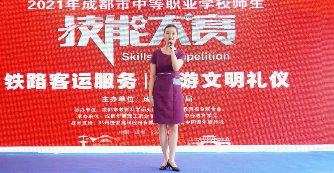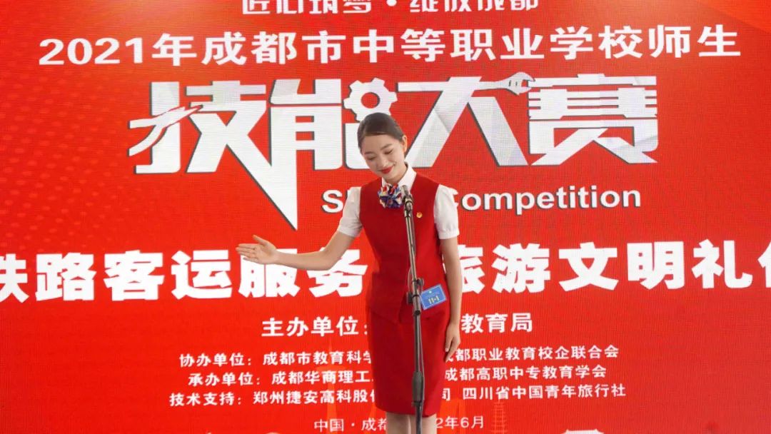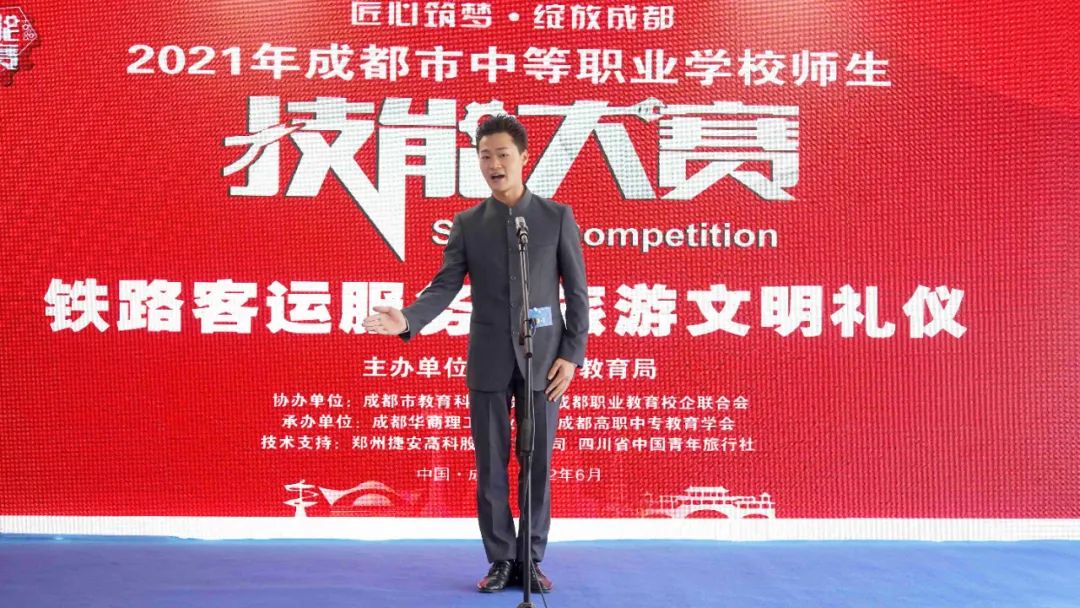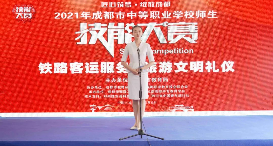 为贯彻《国家职业教育改革实施方案》《四川省职业教育改革实施方案》精神,进一步深化我省职业教育教学改革,推进“以赛促教、以赛促学、以赛促改”,全面提高技术技能型人才培养质量,6月28日,由成都市教育局主办,成都市教育科学研究院、成都职业教育校企联合会协办,成都高职中专教育学会、成都华商理工职业学校承办的2021成都市中等职业学校师生技能大赛“青旅杯”旅游文明礼仪赛项(学生组)在成都华商理工职业学校顺利举行。
