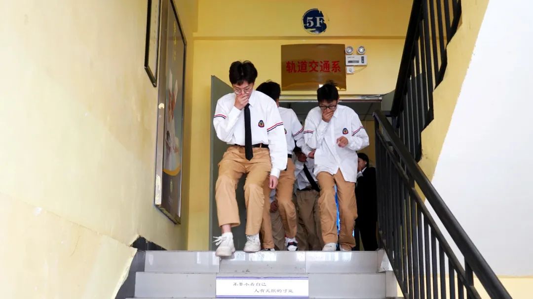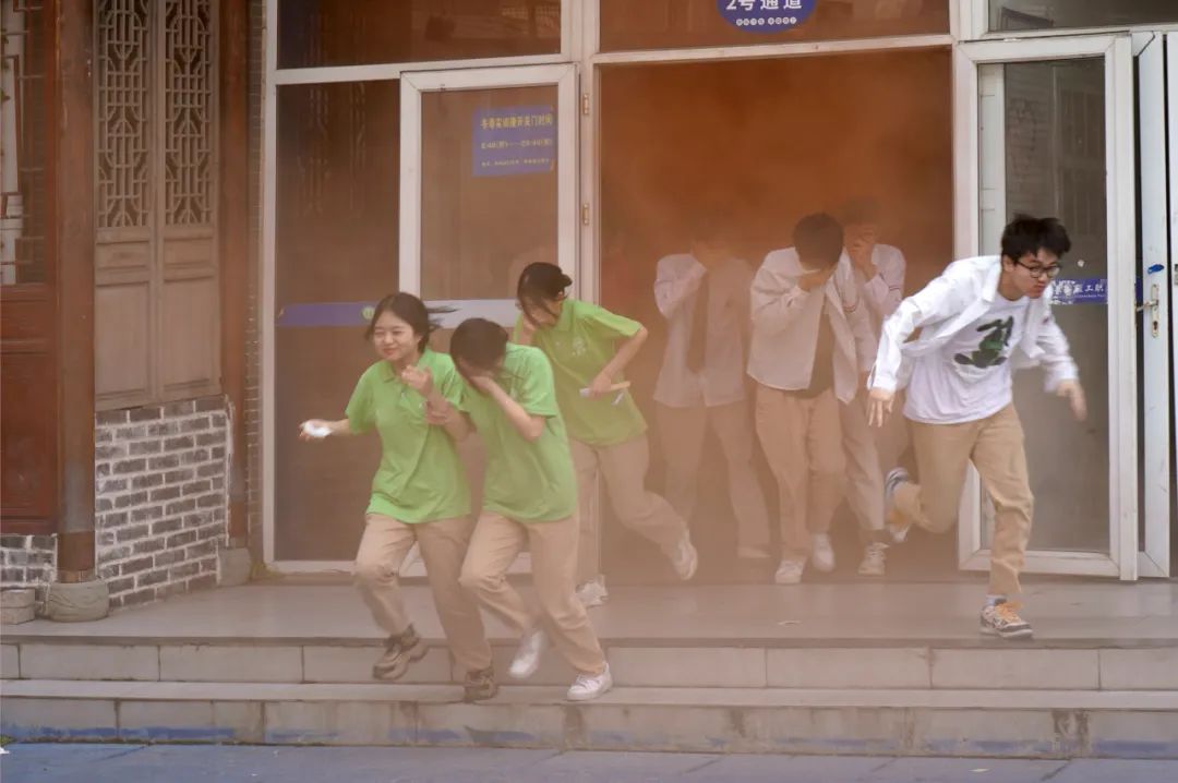 随着密集的警报声响起,消防安全疏散演练拉开序幕。老师迅速组织学生疏散,同学们在老师的指挥下掩住口鼻弯腰、低姿式匍匐前进的方式迅速逃生,并迅速撤离到空旷的安全地带。