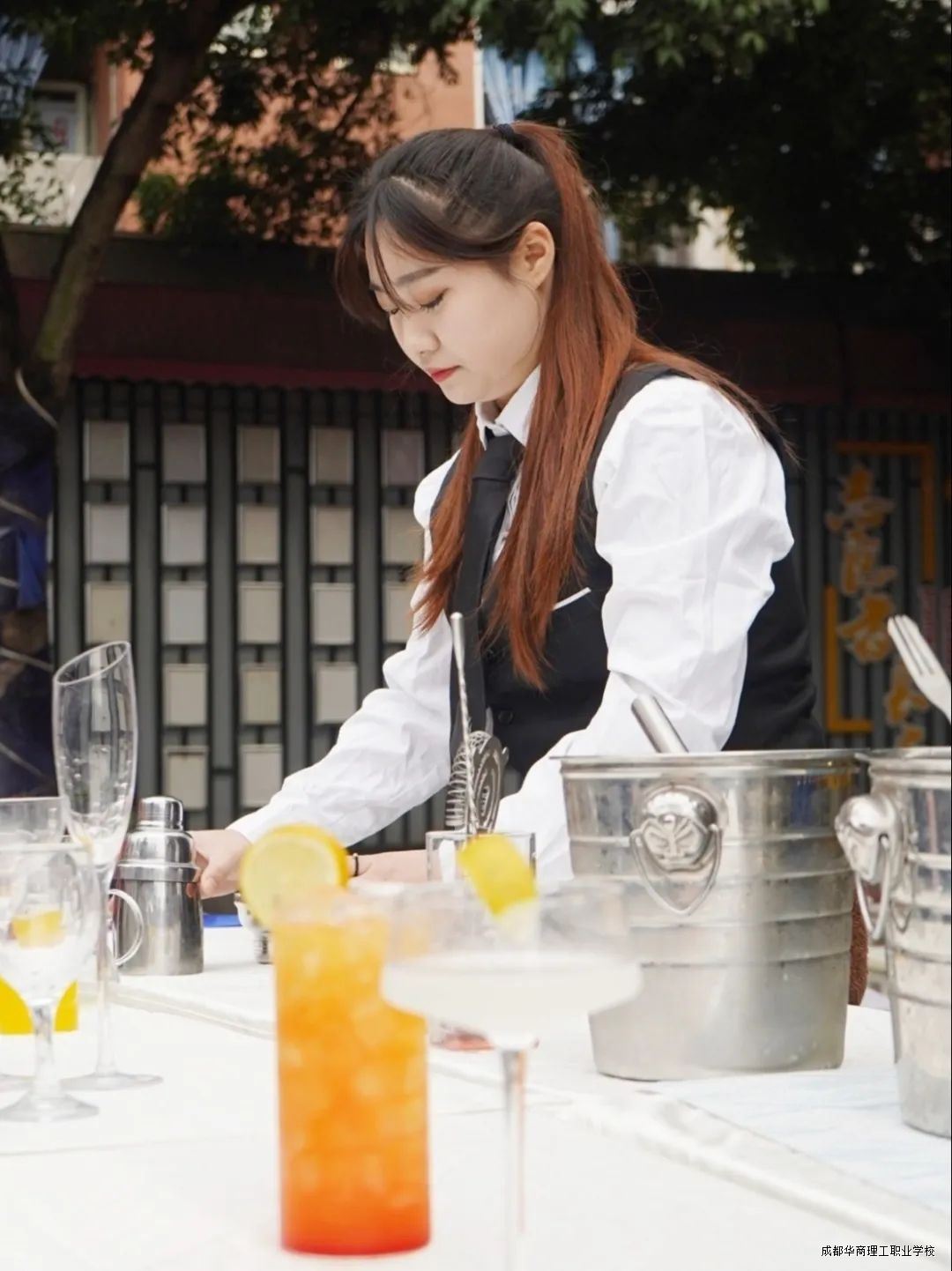 调酒社是一个时尚且充满青春的元素,在这里你可以见到世界各国名酒,了解酒背后的那一份寄托的情怀,得体的服饰、健康的仪表、高雅的风度和亲善的表情展示出来的个人气质。调酒社是培养社会需要的合格的全面人才的重要途径,第二课堂涉及面广,内容丰富,能开阔学生的视野,提高学生的综合能力。