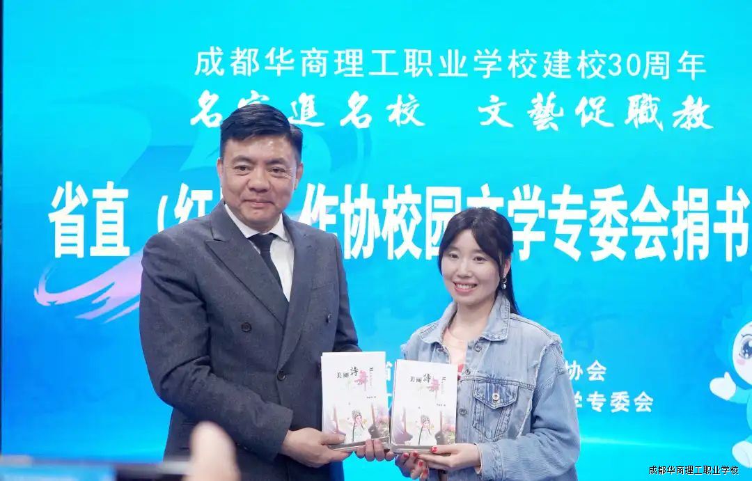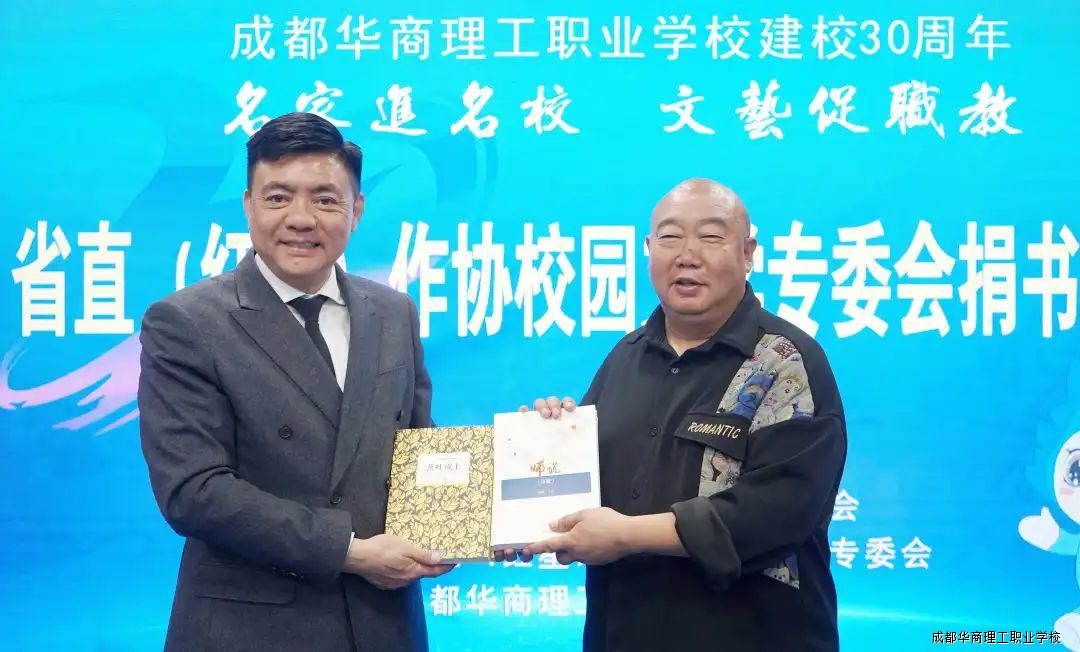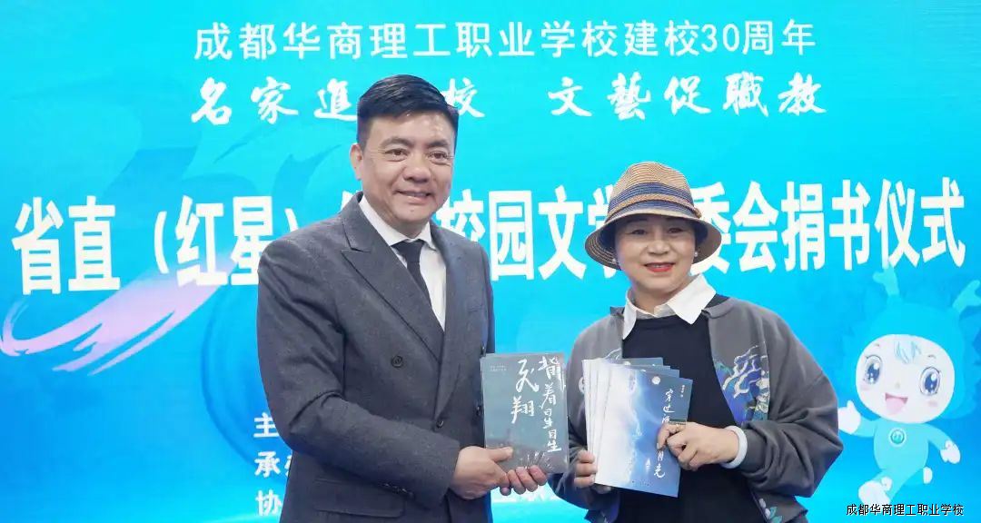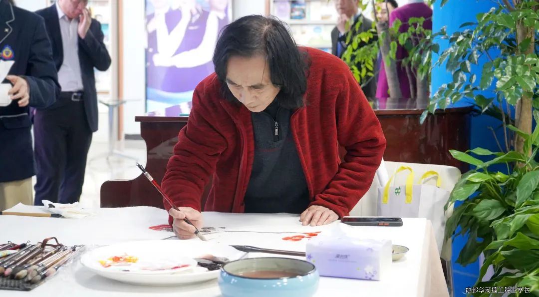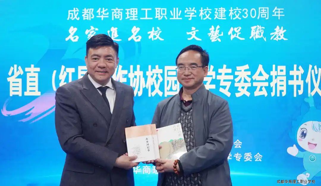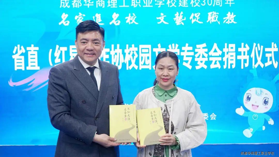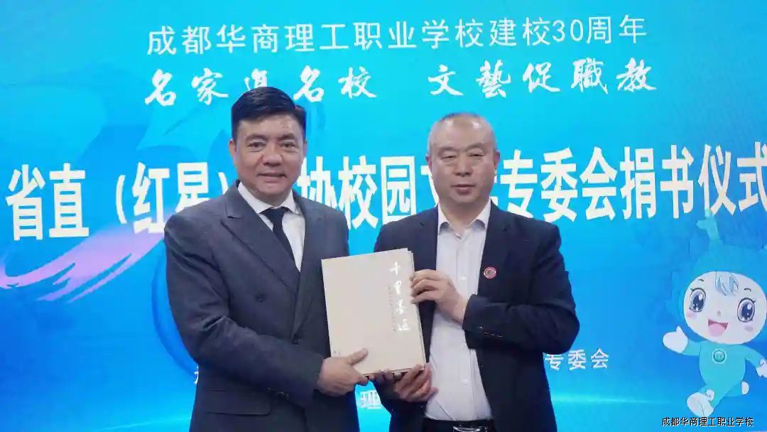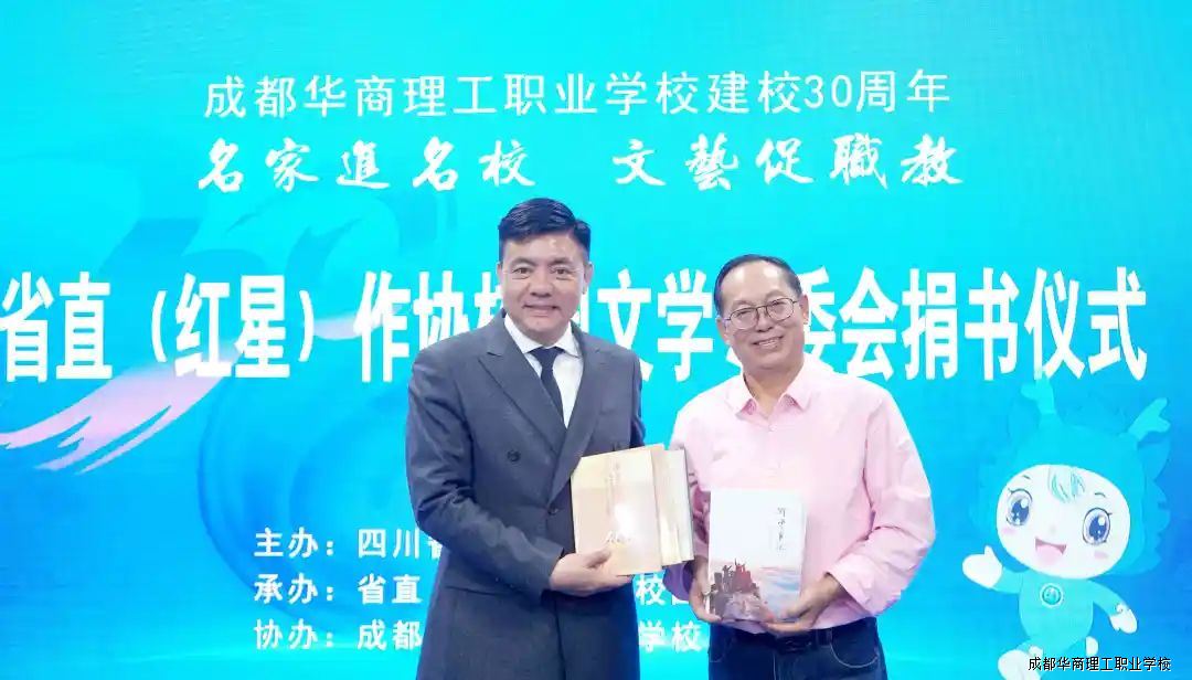 为庆祝成都华商理工职业学校建校三十周年,3月26日,四川省省直(红星)作协校园文学专委会知名书画家一行莅临我校,他们现场挥毫泼墨,创作了一幅幅精美的书画作品,同时,举行新书捐赠仪式。