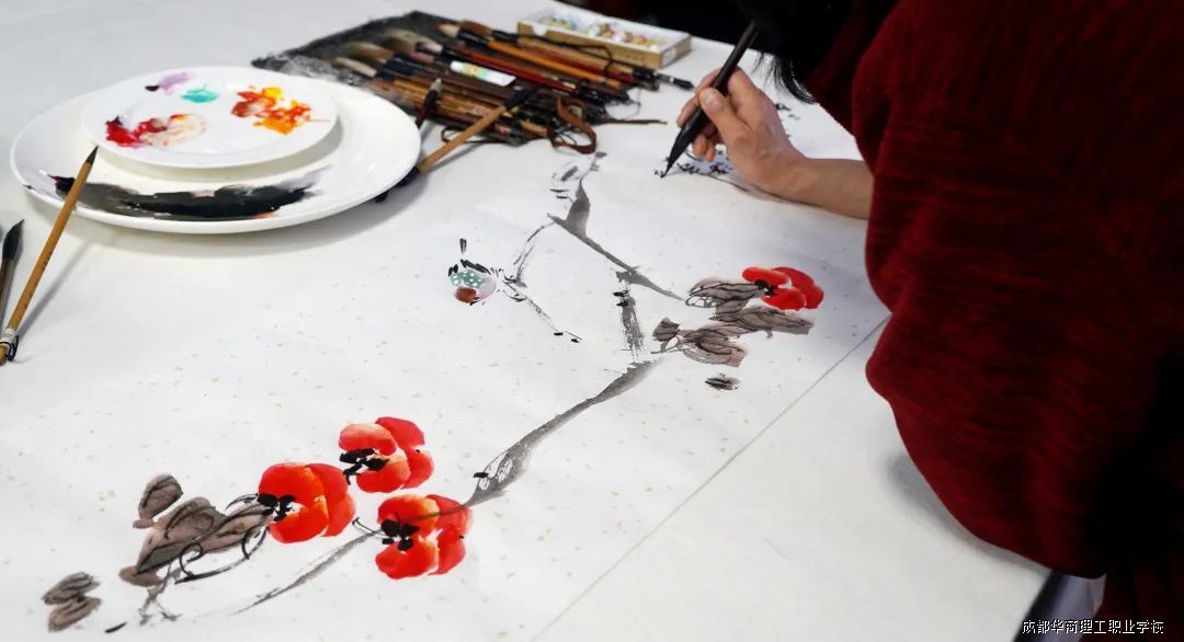 在优美的华商理工校园里,书画家们以饱满的热情投入创作。他们或挥毫泼墨,或细致勾勒,或泼色成彩,或点线交织,每一笔、每一划都充满了艺术魅力。在他们的笔下,山水、花鸟、人物栩栩如生,仿佛把人们带入了一个充满诗意的艺术世界。